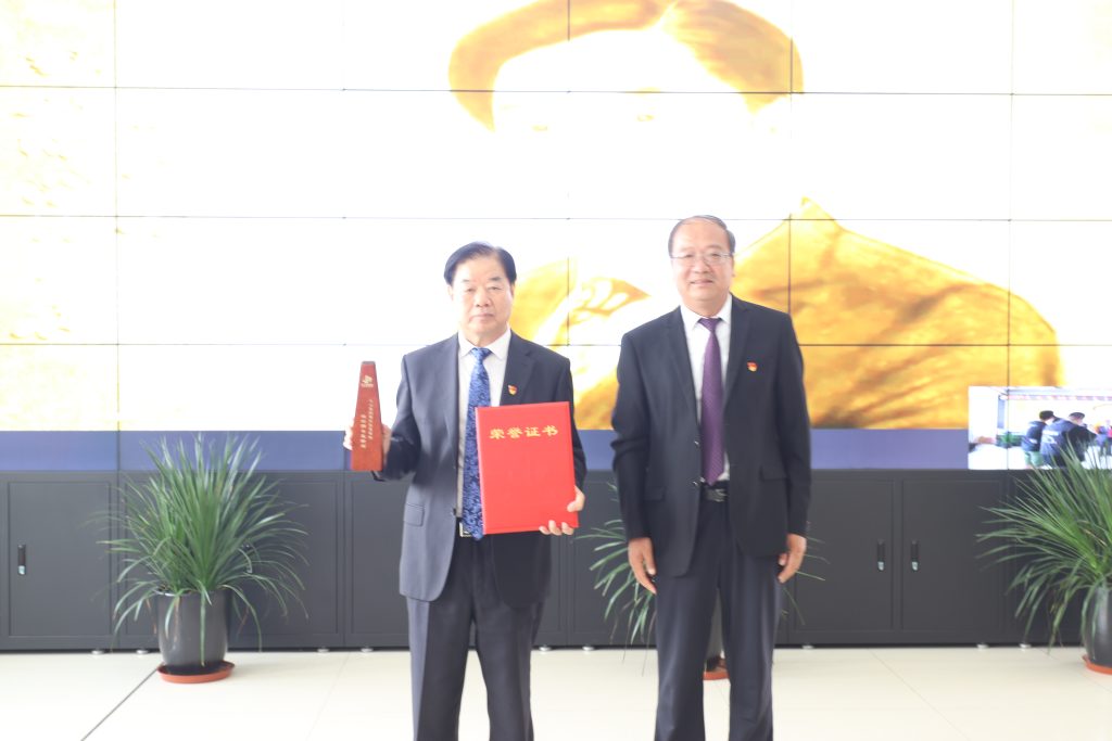 路橋公司公司書記王瑞生(41周年)。大元集團副總裁郝書明為其頒獎。