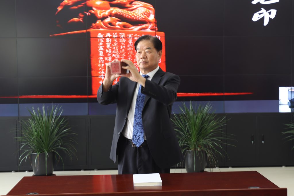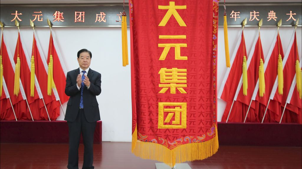 大元集團黨委書記、董事局主席李建國親展帥旗。帥旗即大元之魂,是大元發展、團結、勇敢和統一指揮的象征,寓意百年傳承,大元基業長青。