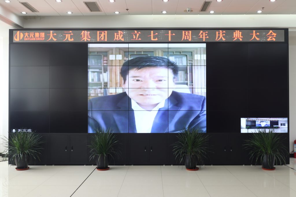 大元集團黨委書記、董事局主席李建國、大元建業集團董事長、CEO王連興、大元集團副總裁郝書明、華筑通CEO韓秀海、大元集團副總裁,工會主席張春榮、黨委副書記于宙、副總裁趙建峰、建業集團財務副總裁郭治煥、常務副總裁湯長禮、總工程師鄭培壯、生產副總裁李楊、首席安全官王艷鳳、董事長、CEO助理王浩,在滄各集團總裁、各單位總經理、書記及2052青年軍代表現場參加,外埠單位總經理、書記線上參加,共同慶祝大元集團成立70周年。