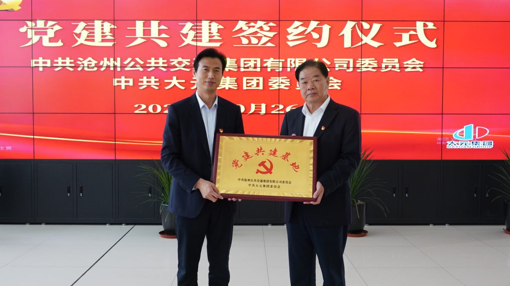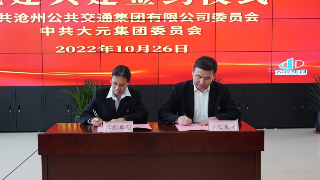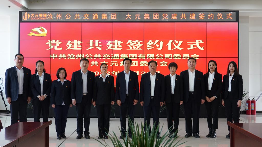 10月26日上午,滄州交發集團黨委委員、公交集團黨委書記、董事長王洪林,滄州公交集團黨委副書記、紀委書記王敏,黨委委員、常務副總經理賈樹東,黨群工作部部長李玲,融媒文創中心主任趙靜,一公司黨支部書記、經理馬欣蒞臨大元集團開展“黨建互聯共建”,大元集團黨委書記、董事局主席李建國,集團副總裁、工會主席張春榮,黨委副書記于宙,總部黨支部書記、黨群文化中心總監王金英,人力資源管理中心副總監張璐出席本次簽約儀式。會議由大元集團總部黨支部書記、黨群文化中心總監王金英主持。