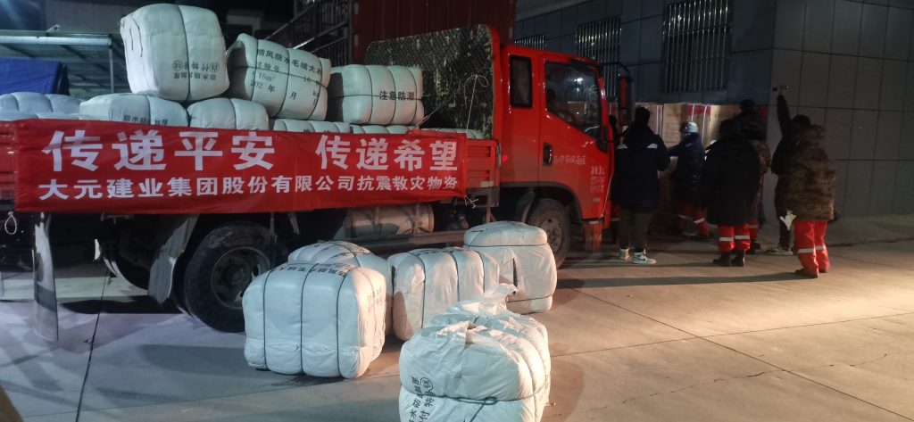 地震無情人有情,2023年12月18日23時59分甘肅臨夏州積石山縣發(fā)生6.2級地震,震源深度10km。與積石山相鄰的青海省海東市三個縣受災嚴重,截至目前造成189人失聯(lián)、傷亡及部分水、電、交通、通訊等基礎設施受損。12月19日上午接到集團董事局李主席指示,青海公司第一時間和災區(qū)政府有關部門取得聯(lián)系,并緊急采購軍大衣、棉被等價值10萬元救災物資,青海公司總經(jīng)理閆世祥、黨支部書記呂寶忠、執(zhí)行經(jīng)理趙偉帶隊送達海東市團委,民和回族土族自治縣中川鄉(xiāng)等災區(qū)現(xiàn)場。